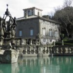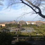 La vera e propria “via d’acqua” che attraversa centralmente il giardino, lo fa sfruttando quattro terrazzamenti che percorrerete in senso contrario alle acque, cioè dal basso verso l’alto (per il semplice fatto che l’ingresso al giardino è situato nel terrazzamento più basso). Quest’ultimo ospita anche le due palazzine gemelle la cui costruzione, iniziata contemporaneamente, si completò in tempi diversi: la prima (entrando) nel 1578 dal Cardinale Gambara, la seconda agli inizi del Seicento dal Cardinale Damasceni Peretti.