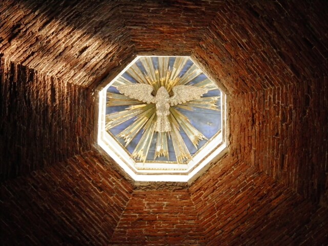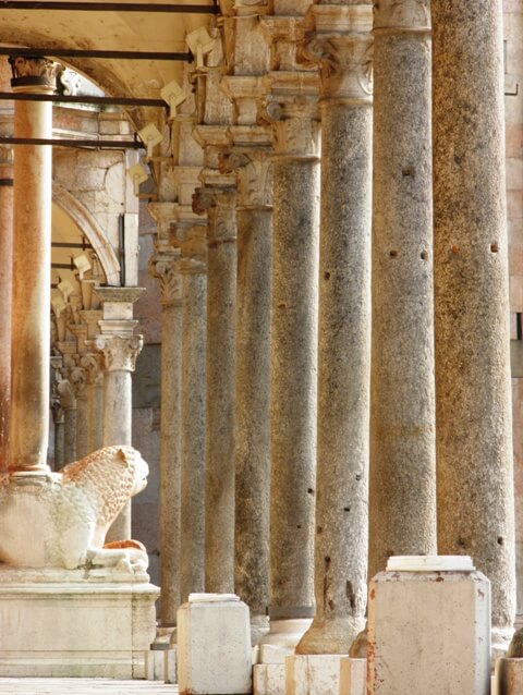 Si tratta di un complesso imponente, con due importanti ingressi laterali da ammirare con attenzione. Il laterizio la fa da padrone, con un tono rosso caldo emozionante. Del XV secolo, invece, l’attuale facciata marmorea.