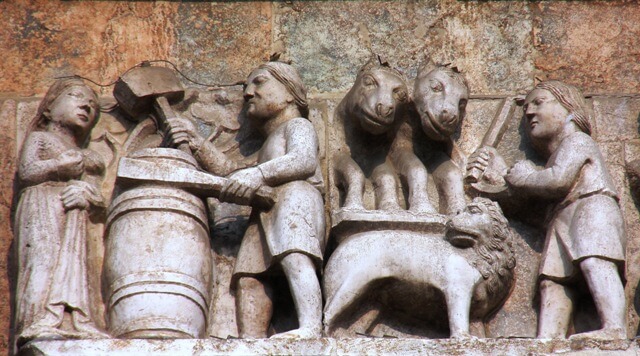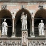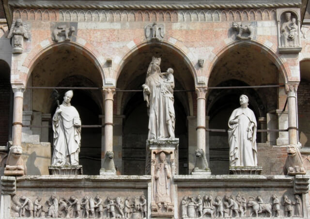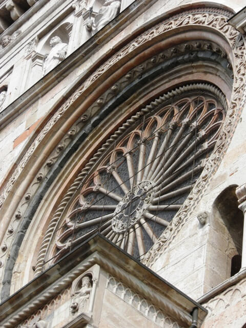 Iniziata nel 1107 ma distrutta da un incendio nel 1117, ci appare oggi nella sua versione rinascimentale. La facciata mostra una pluralità di ornamenti ed interventi. Il grande rosone e la loggia sottostante. Il doppio ordine di loggette. Le numerose statue ma anche la ricchezza di bassorilievi medievali sopravvissuti nei secoli.