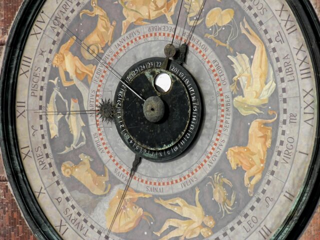 Magnifico l’orologio astronomico. Realizzato nel 1583, deve la sua decorazione a Giovanni Battista Dordoni e Martire Pesenti. Complesso il gioco dei quadranti. Il più esterno indica l’ora del giorno. Poi il segno zodiacale “vigente” con il numero dei giorni divisi in tre decadi. Poi ancora il mese ed i giorni del mese (a scatti di due giorni ciascuno). Infine, il giorno del mese e la fase lunare.