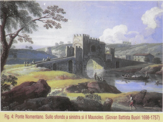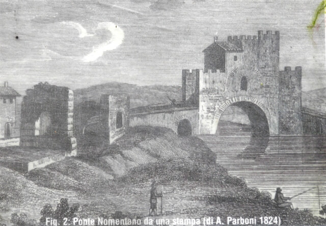 Si sa che il Ponte Nomentano appartenne, nel tempo, alla Chiesa di San Lorenzo in Lucina (1205), al Monastero di Sant’Agnese (1480), a Nicolò Lotti (1515) ed alla dogana di Roma, allorchè, in data 1° gennaio 1532 il cardinale camerlengo dispose l’unione delle porte e dei ponti della città alla dogana stessa. All’epoca il Ponte Nomentano era proprietà del Monastero di San Pietro in Vincoli. Nella storia del ponte c’è pure la notizia della sua occupazione per mano militare da parte degli Orsini di Mentana e la successiva riconquista di Roberta Sanseverino (1418-1487)”.