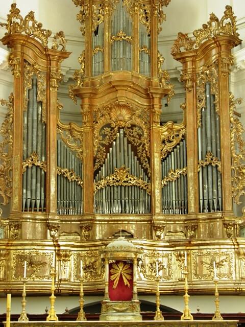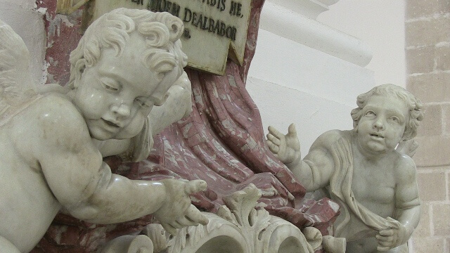Il grande organo d’oro dalle 2916 canne ed i 6 mantici, l’imponente lampadario dell’abside ed i tanti più piccoli disposti nella chiesa. Guardate le acquasantiere di marmo policromo con gli angeli: c’è tutta la voluttà della rappresentazione sacra barocca. Per coloro in grado di apprezzarne la tecnicalità, San Nicolò all’Arena è attraversata per largo da una lunghissima meridiana astronomica, in grado di segnare, con un raggio di luce, il mezzogiorno vero. Anche lei è la più grande di Sicilia, per non smentirsi.