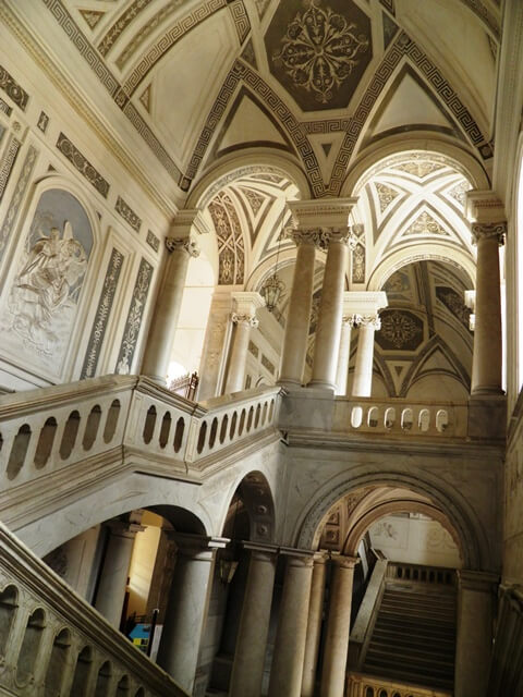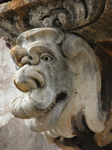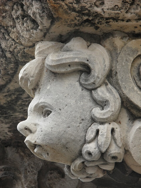 Raccontarveli singolarmente richiederebbe un libro (peraltro c’è il bookshop e relative visite guidate), ma formidabili sono i decori esterni che circondano finestre e balconi. Gli intagli in pietra (avviati nel 1703) sono infatti di prim’ordine: una popolazione pluriforme di figure, mascheroni, putti, decori vari. Guardate le teste che ornano le mensole dei balconi, una diversa dall’altra. Un corredo fiabesco. Elegantissimo lo scalone d’ingresso ricco di tarsie marmoree, colonne e stucchi. Incantevoli i chiostri.