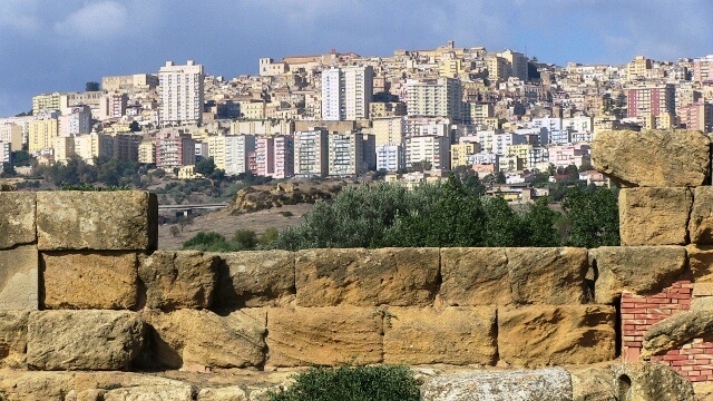 L’Agrigento di oggi è infatti la meno opportuna e più illogica cornice che la Valle dei Templi potesse meritare. Il fondale costituito dai palazzoni multipiano anni ’70 che hanno rovinato prima di tutto la stessa Agrigento è semplicemente incredibile, un incubo assolutamente reale.