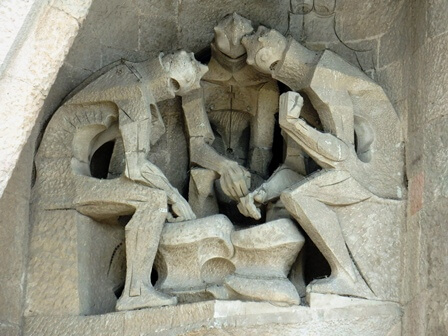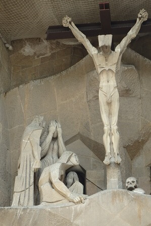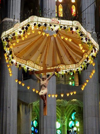 Non vi resta che lasciarvi trasportare dall’emozione guardando le torri che svettano verso il cielo, la rappresentazione della Passione, con la scena della flagellazione posta lì, sulla porta della basilica. Perdendovi nella foresta di colonne infinite con la quale Gaudì diede la sua interpretazione, visionaria, delle navate gotiche. Struggendovi di fronte ad una delle crocifissioni più emozionanti che sia dato vedere (ricordate quella vista dall’alto di Dalì?)