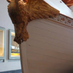 L’altra lancia reale – realizzata nel 1889 per Umberto I di Savoia – è invece completamente bianca con una grande aquila dorata a prua. Questa regge lo stemma di Casa Savoia. A poppa, il