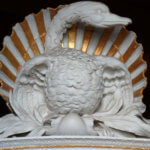 Su di questo al centro, a poppa, un grande uccello marino con alle spalle una conchiglia. Alla destra, un drago marino che regge una tavolozza da pittore per indicare la dedicazione della lancia alle arti liberali.