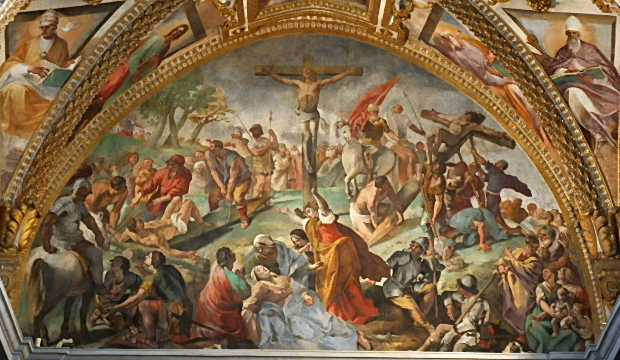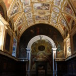 Così, il Cavalier d’Arpino, con il fratello Bernardino, affresca la volta dell’abside della chiesa della certosa con le Storie del Vecchio e Nuovo Testamento con evangelisti, dottori della chiesa, profeti e santi certosini. Siamo nella prima metà degli anni ’90 del ‘500.