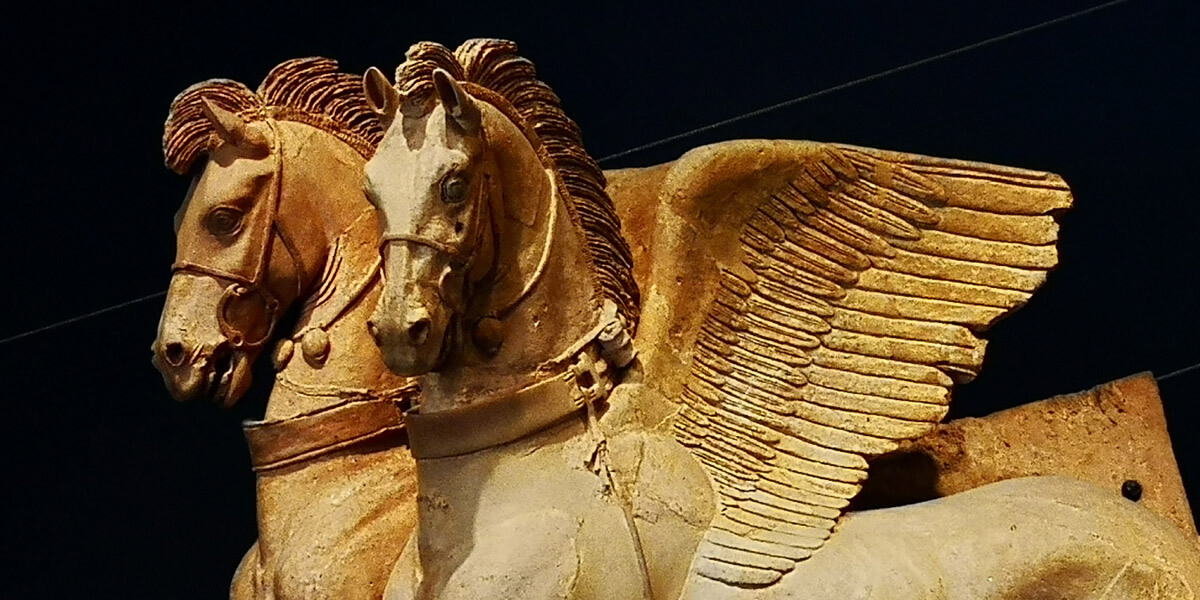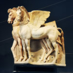 La prima – un’immagine iconica degli Etruschi – è rappresentata dal grade altorilievo dei Cavalli Alati. Originariamente, erano posti all’angolo sinistro del triangolo frontonale della facciata del Tempio della Regina.