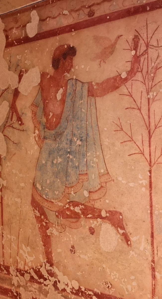 La seconda grande attrattiva sono gli affreschi staccati che ornavano quattro tombe scoperte nelle necropoli di Tarquinia. Il museo ce li offre all’interno delle quattro tombe ricostruite a grandezza naturale.