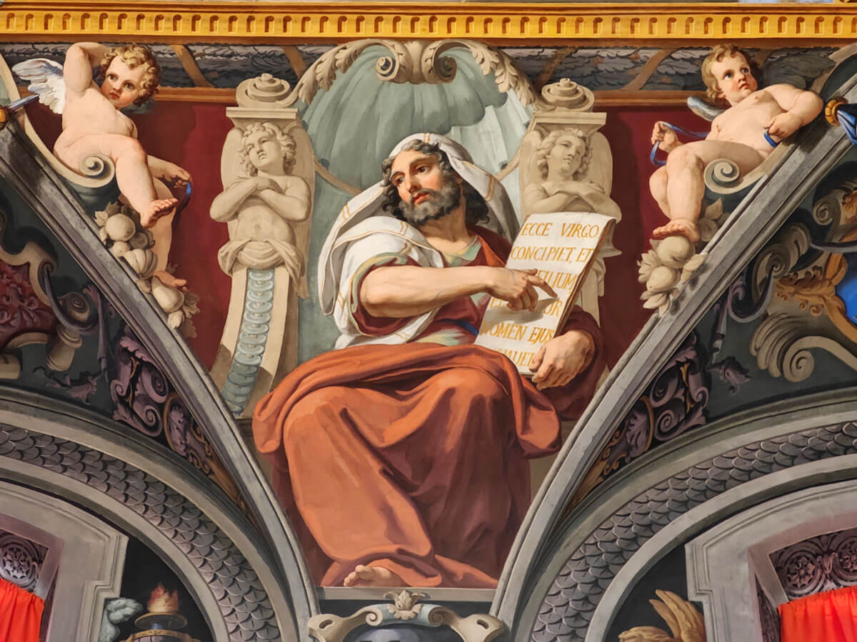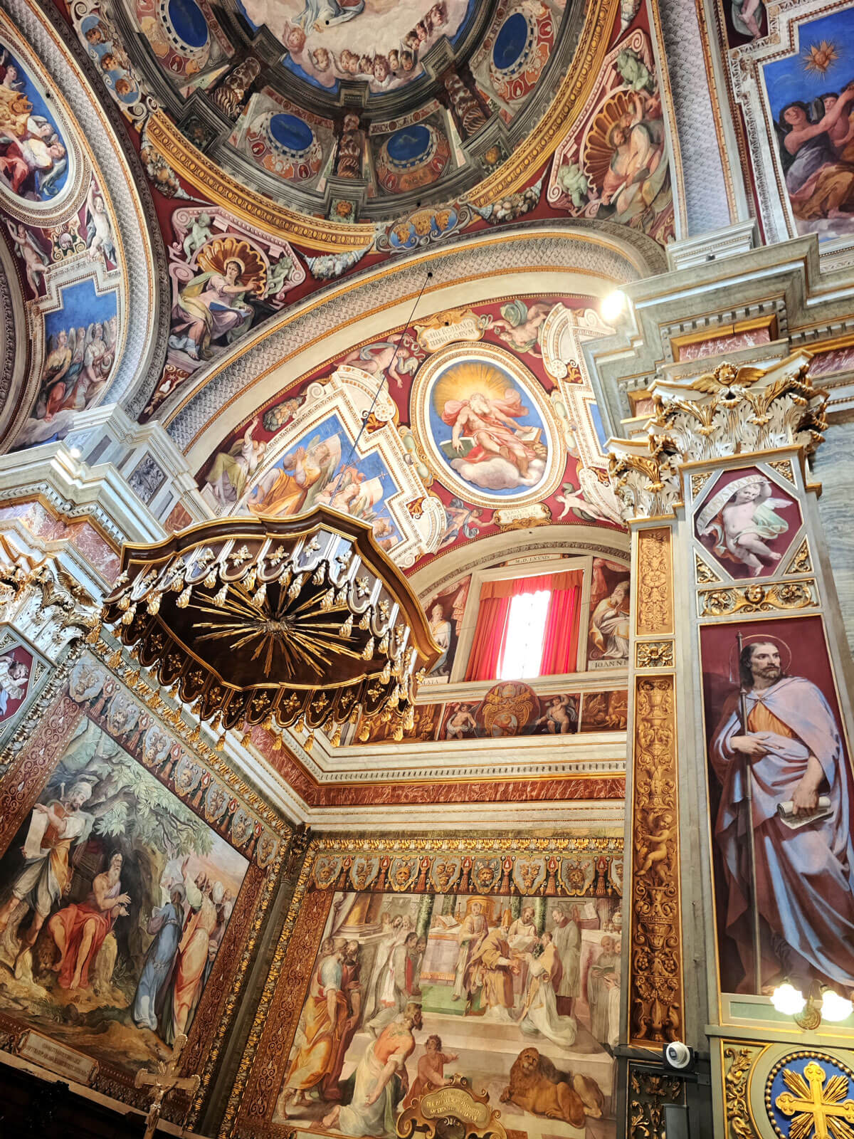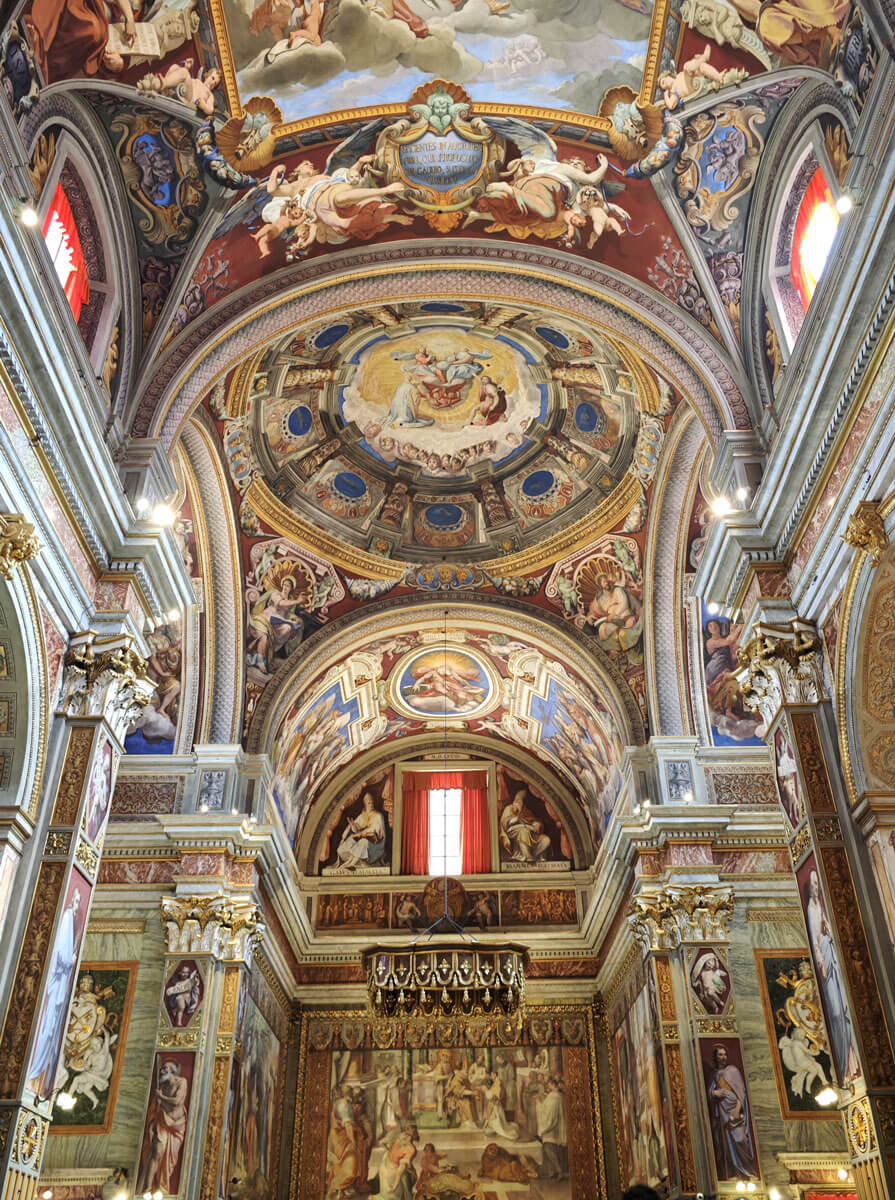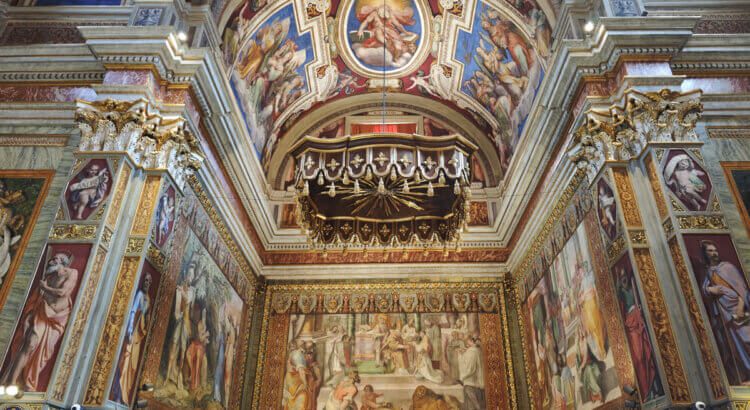 La cupola posta al centro tra i transetti è, in realtà, un’illusione ottica come andrà di moda nei secoli successivi. Insomma, un’anticipazione di capolavori straordinari come la Gloria di Sant’Ignazio di Andrea Pozzo.