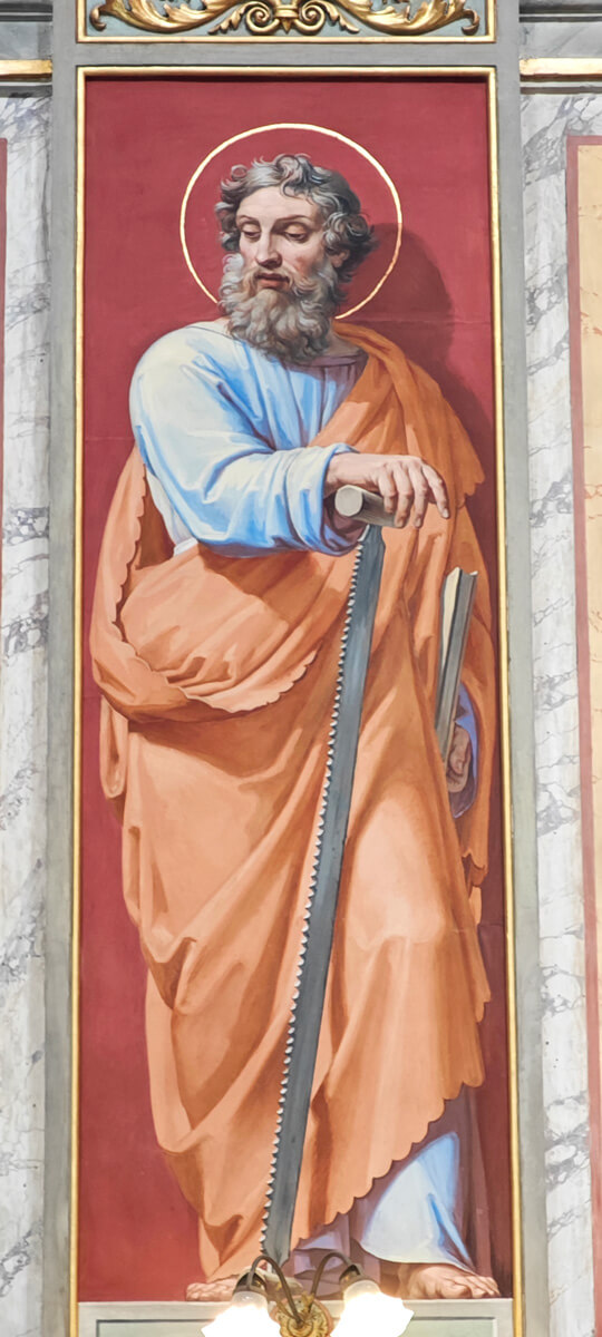 Iniziamo la nostra visita della Chiesa di San Girolamo dei Croati dall’abside. Da destra a sinistra, sulle pareti troviamo: