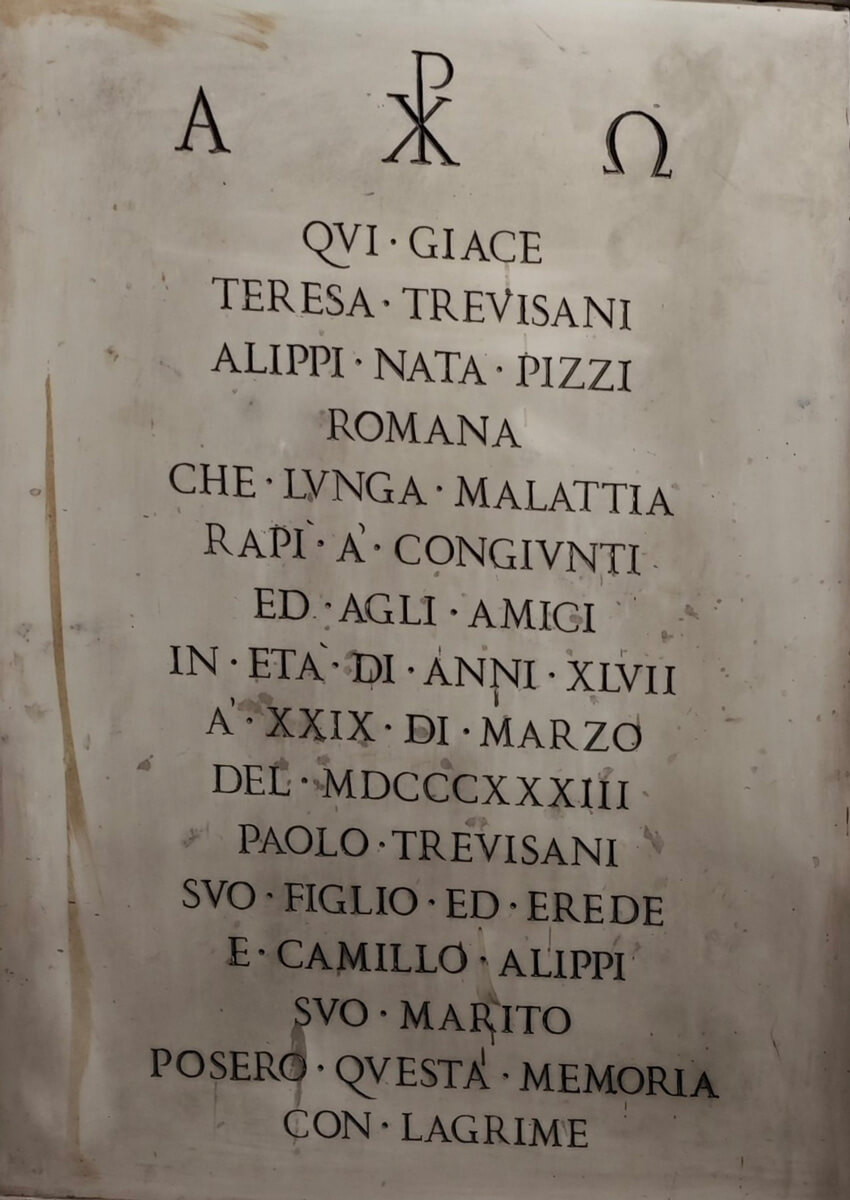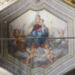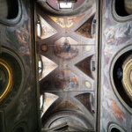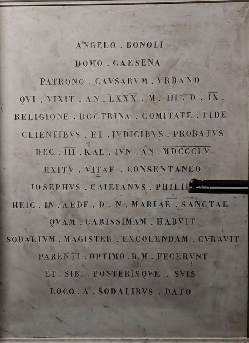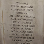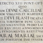 Poi dobbiamo sapere che nel 1604 sotto l’altare venne individuato un cippo (oggi in sacrestia) con l’iscrizione Haec est domus in qua orabat Sancta Caecilia – MCXXXI, cioè “Questa è la casa nella quale pregava Santa Cecilia – 1131”. Dunque una testimonianza che la tradizione in questione era viva nell’XII secolo a supporto del primo titolo della chiesa.